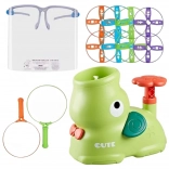 De set bevat een beschermbril met helder vizier die ogen en gezicht tijdens het spel beschermt.