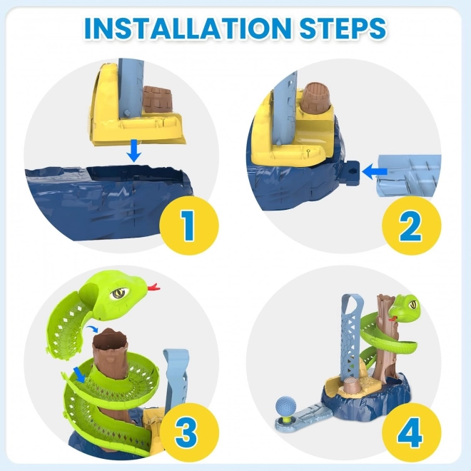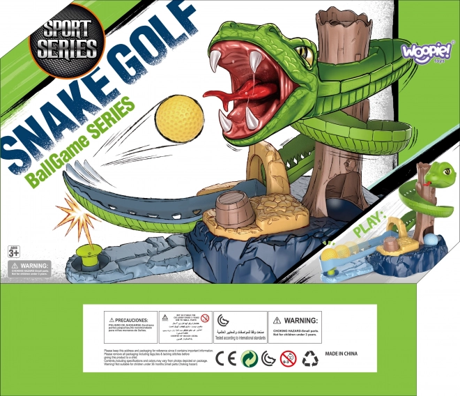 Ontdek spannende familiepret met WOOPIE SNAKE GOLF! Kinderen laten de bal los vanaf de toren, hij glijdt via de baan naar de start, en de taak is om precies te mikken, slim de baan te kiezen en obstakels te omzeilen zodat de bal eindigt in de hole met vlag. Een ideale introductie in de wereld van golf die op speelse wijze geduld en strategie aanleert.