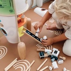 Het speelgoed is hoofdzakelijk gemaakt van hout, aangevuld met hoogwaardig kunststof en afgewerkt met een niet-giftige lak. Het is duurzaam, esthetisch vormgegeven en ontworpen voor langdurig spel in de kinderkamer. Stimuleert verbeeldingskracht, creativiteit en fijne motoriek.