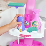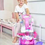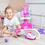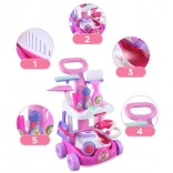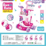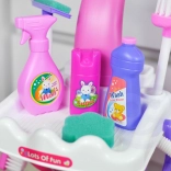 De set bevat alles voor fantasierijk spel: van trolley met handgreep en houders tot vegers, mop, stofblikken en “reinigingsmiddelen”. Het veilige ontwerp en het lage gewicht zorgen voor comfortabel gebruik, ook voor jongere kinderen.