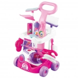 Ergonomische handgreep, houders voor accessoires en alles netjes op één plek. Kinderen kunnen de trolley eenvoudig door de kamer duwen.