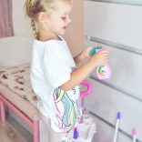 De Woopie kinderstofzuiger heeft een aan/uit-schakelaar, lichtsignaal en een flexibele slang voor een levensechte schoonmaakervaring.