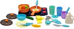 Dankzij diverse accessoires zoals plastic etenswaren, pannen en allerlei servies kunnen kinderen het koken nabootsen en zo hun creativiteit en motorische vaardigheden verbeteren.