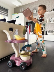 De Woopie kinder schoonmaakwagen is het perfecte speelgoed voor kinderen die graag de activiteiten van volwassenen nabootsen. Met deze schoonmaakset kunnen kinderen leren hoe ze schoon moeten houden. Deze schoonmaakset is geschikt voor kinderen vanaf 3 jaar.