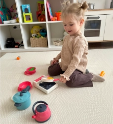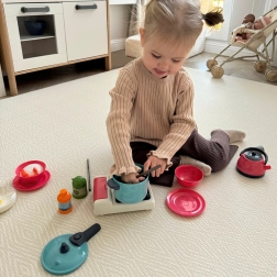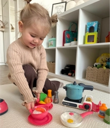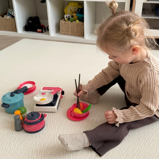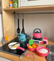 De set is gemaakt van veilige materialen en de gedetailleerde nabootsing van echte keukentools zorgt voor veiligheid en duurzaamheid. Voor dit speelgoed zijn geen batterijen nodig en het is bovendien compact, waardoor het gemakkelijk op te bergen is.