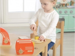 Houten toaster Masterkidz is een mooie en duurzame educatieve speelset die kinderen aanmoedigt tot creatief spel en hun motorische en sociale vaardigheden ontwikkelt. Dankzij de stevige uitvoering van natuurlijk hout is hij veilig en prettig in gebruik.