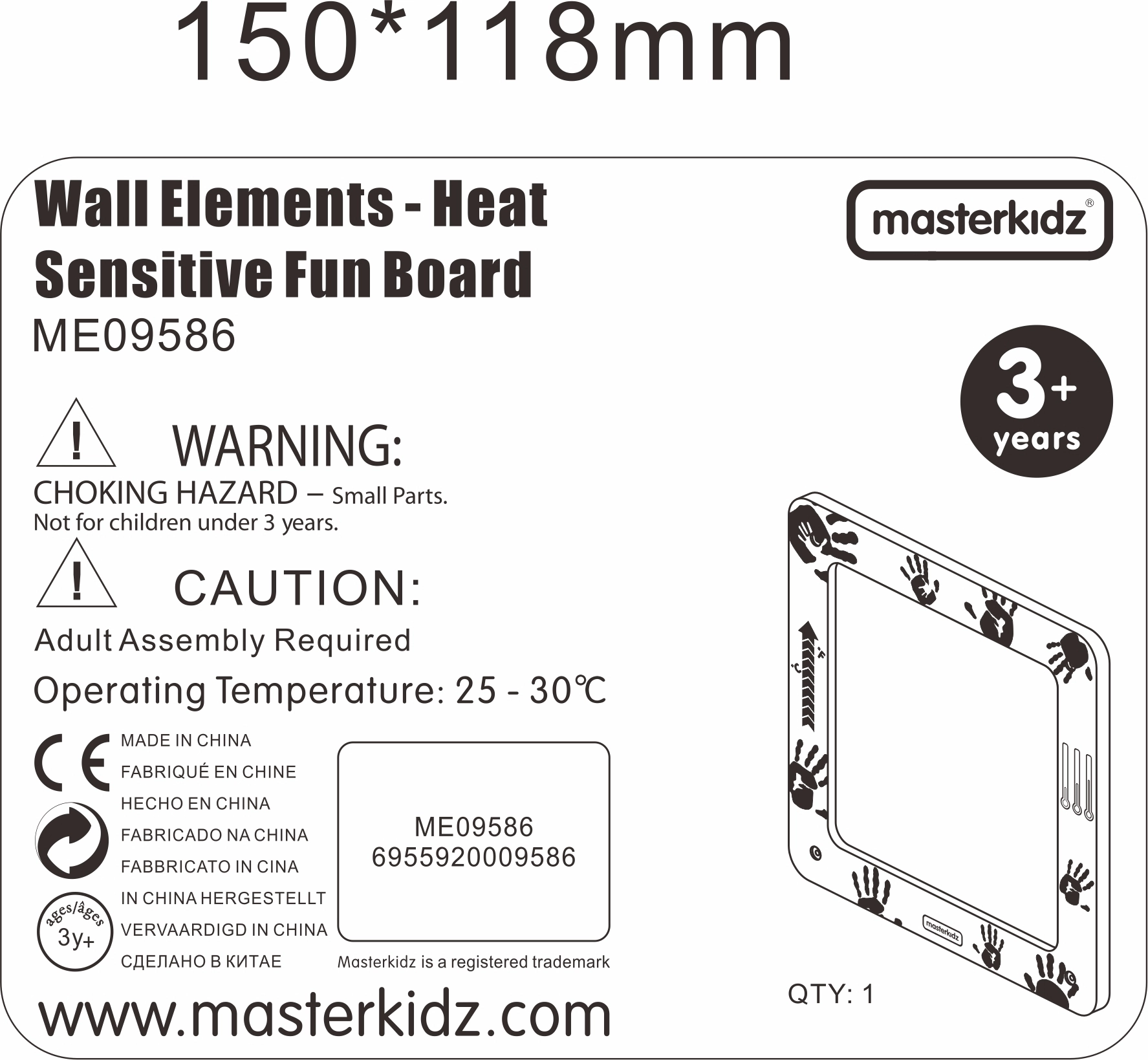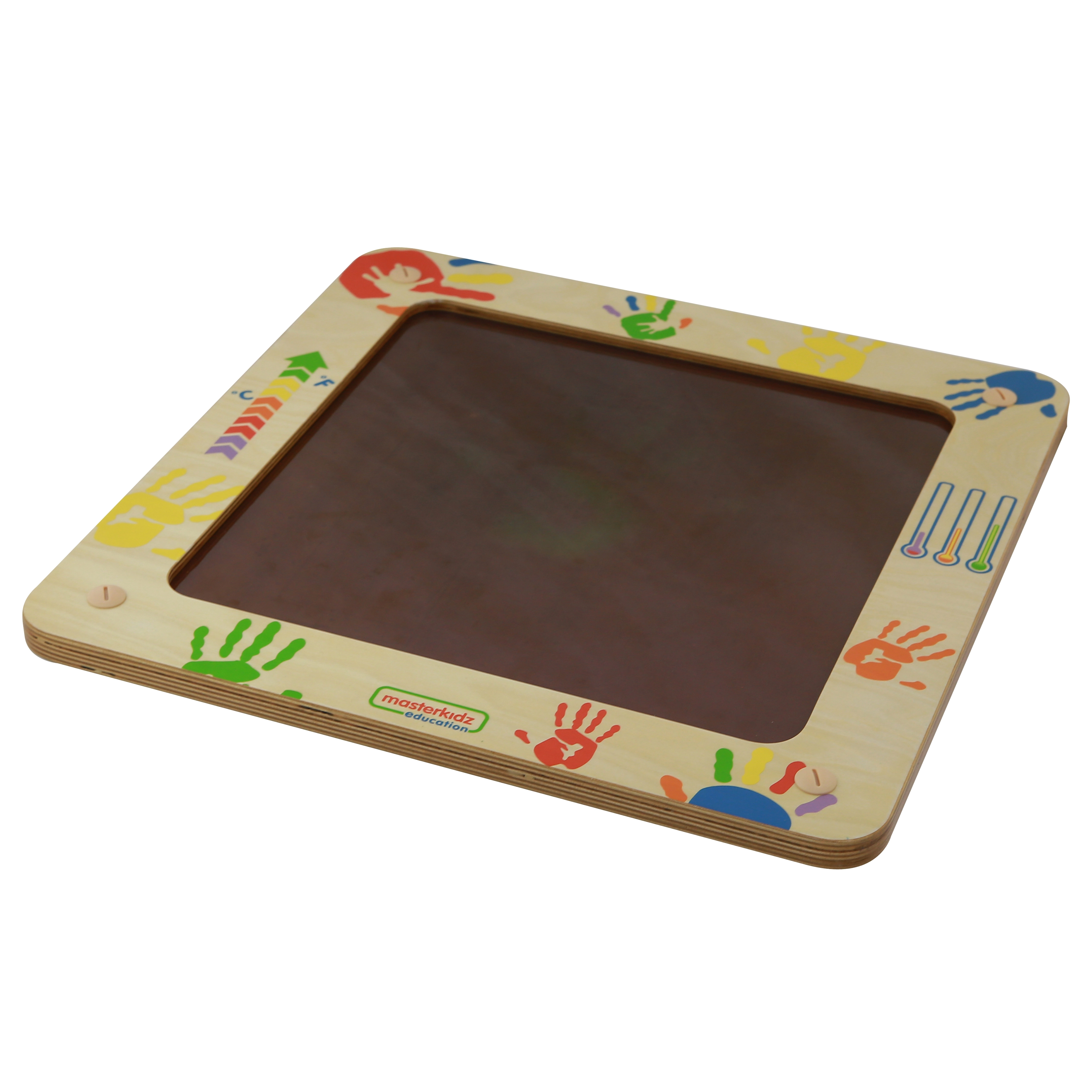 Het Masterkidz bord is een uniek educatief speelgoed waarmee kinderen kleurveranderingen op het oppervlak kunnen waarnemen door de warmte van hun handen of vingers. Het is een geweldige manier voor kinderen om te leren over temperatuur en het menselijk lichaam.
