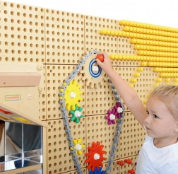 Verander het muurpaneel in een interactieve werkplaats. Deze 79-delige set van MASTERKIDZ bevat diverse maten tandwielen, spacers, een ketting en montagematerialen waarmee kinderen eenvoudig hun eigen tandwielmechanisme bouwen. Met de speciale Masterkidz-schroeven bevestigen ze de onderdelen aan het STEM-paneel, draaien aan de slinger en zien hoe het hele mechanisme tot leven komt.