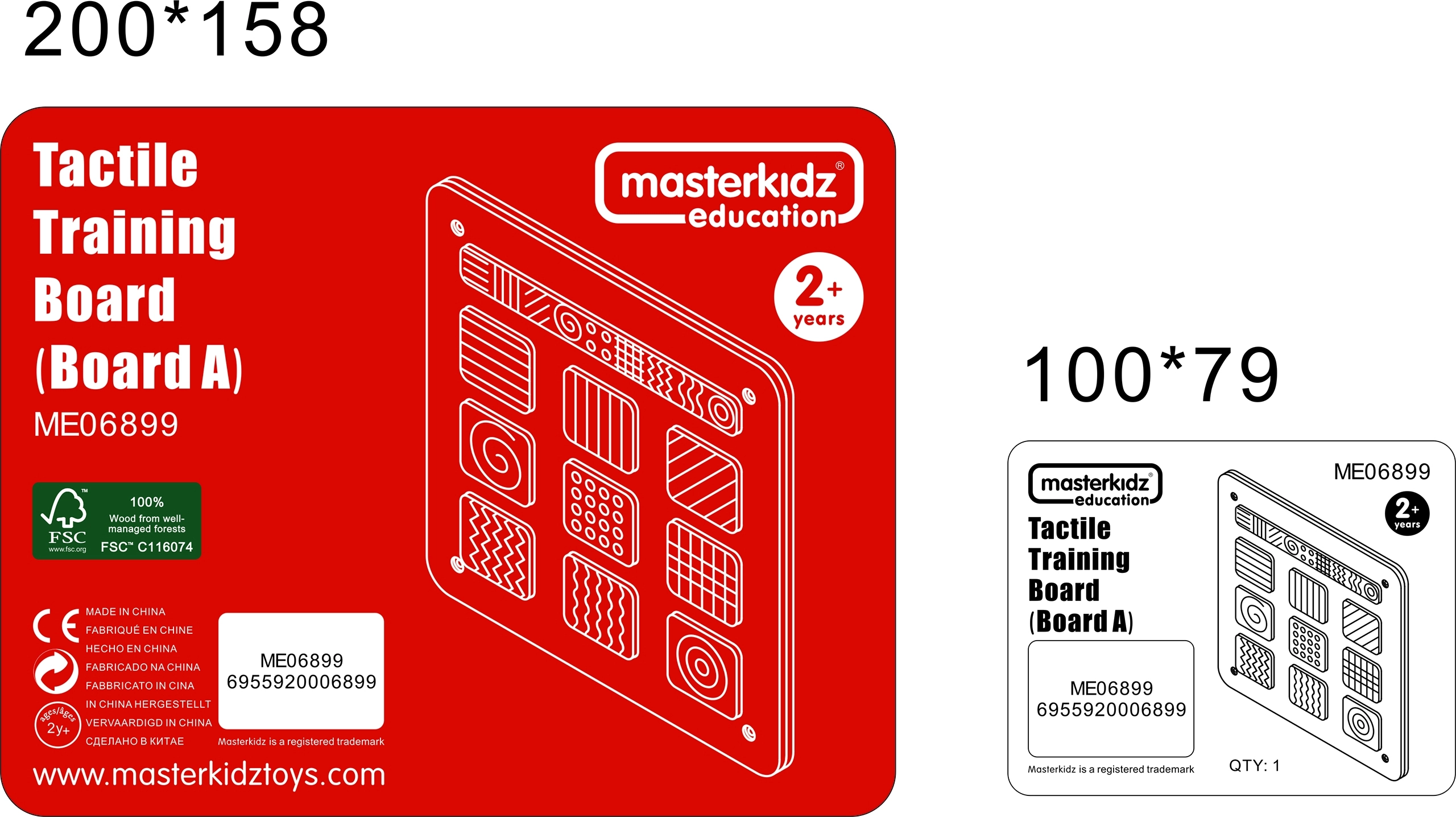 Het bord bevat 9 paren texturen met duidelijk te onderscheiden patronen die leren door spel ondersteunen. Dankzij de robuuste houten uitvoering is het duurzaam en ideaal voor thuis, kinderdagverblijven, speelhoeken en therapeutische centra. De montage is flexibel – aan de muur, in het Masterkidz Flex-systeem en op een vrijstaande standaard.