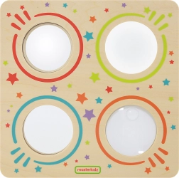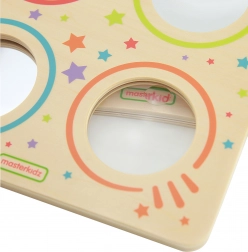 Ontdek de wereld van optica op speelse wijze met het houten bord van MASTERKIDZ. Vier ronde elementen – bolle spiegel, holle spiegel, platte spiegel en vergrootlens – bieden kinderen visuele experimenten en stimuleren nieuwsgierigheid, zelfbewustzijn en zintuiglijke ontwikkeling. De robuuste houten uitvoering is duurzaam en milieuvriendelijk.