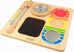 Het interactieve houten bord van MASTERKIDZ leert kinderen warm, neutraal en koud onderscheiden op een veilige en speelse manier. Dankzij het temperatuursensitieve oppervlak en de kleurrijke thermometer ontdekken kinderen zichtbaar wat warmer en wat koeler is, en begrijpen ze beter wanneer je iets beter niet aanraakt. Ideaal voor thuis, de kleuterklas en speciaal onderwijs, compatibel met het Masterkidz Flex-systeem.