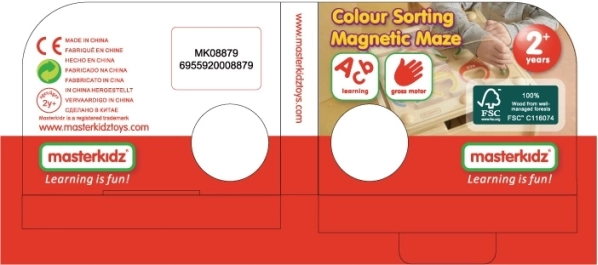 Het houten magnetische labyrint van MASTERKIDZ combineert kleuren leren en spelplezier. Kinderen verplaatsen de kogeltjes met een magnetische pen onder de transparante afdekking naar de juiste plekken, waardoor ze fijne motoriek, coördinatie en concentratie ontwikkelen. De veilige, gesloten constructie zorgt ervoor dat de kogeltjes niet eruit vallen.