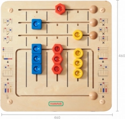 Dit hoogwaardige educatieve bord van MASTERKIDZ is verdeeld in twee delen: een bovenste taakbalk waar kinderen drie vormen toewijzen (rode zeshoek, blauw vierkant, gele cirkel), en een onderste deel met drie kolommen met 9 vormen om te sorteren. Dankzij de gekleurde knoppen oefenen kinderen tegelijkertijd hun kennis van kleuren. Alle onderdelen zijn in het bord geïntegreerd – ze schuiven gemakkelijk, maar vallen er niet uit en raken niet kwijt.