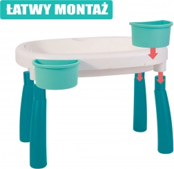 Ontdek de veelzijdige 2-in-1 water- en zandtafel voor kinderen, die van elke middag een kleine vakantie maakt. Twee gescheiden bakken maken het mogelijk om waterspel te combineren met zandactiviteiten, terwijl de stabiele poten en duurzame kunststof zorgen voor veilig spelen thuis, in de tuin en op het strand.