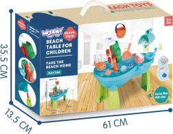 De watertafel 2-in-1 van het merk WOOPIE is het ideale speelgoed voor plezier met water en zand. Het bevat accessoires zoals vissen, een gieter, een emmer, drijvers en nog veel meer.