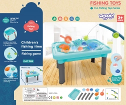 De set omvat in totaal 6 stukken, waaronder de tafel, een hengel, een waterschepje en drie magnetische visjes. Bovendien kunnen de visjes opgewonden worden zodat ze op het wateroppervlak drijven, wat kinderen inspireert om te verkennen.