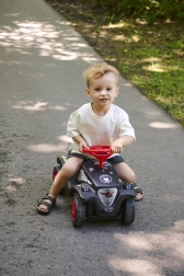 De speelgoedvoertuig stimuleert: - - Grove motoriek: rijden op de loopauto zet het hele lichaam in, helpt het kind de kracht van been- en armspieren te ontwikkelen.