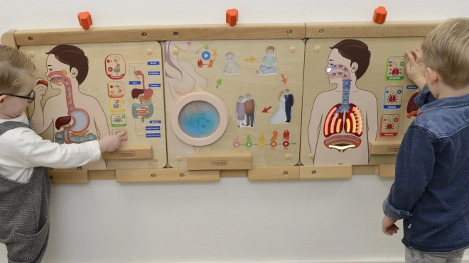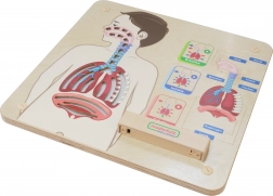 Het bord ondersteunt het leren over het ademhalingsproces via spel, legt de verschillende fasen uit en laat kinderen op een interactieve manier kennismaken met het systeem.