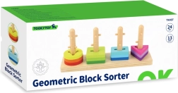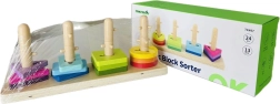 Deze hoogwaardige houten sorter combineert kleurrijke geometrische vormen met vier verticale pinnen op een stevige basis. Kinderen vanaf 2 jaar oefenen bij het plaatsen van de stukken logisch denken, geduld en een correcte greep. Het speelgoed is gemaakt van duurzaam hout en afgewerkt met veilige, niet-giftige verven.