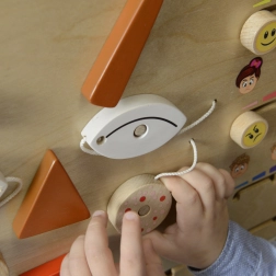 Het bord is eenvoudig te gebruiken in een wandframe of los op tafel of vloer. Het is robuust, veilig en ideaal voor de Montessori-aanpak: leren via zintuiglijke en praktische activiteit.