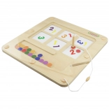 Dit hoogwaardige houten bord van MASTERKIDZ met magnetisch doolhof leert kinderen op speelse wijze cijfers, hoeveelheden en kleuren. Met de meegeleverde magnetische pen verplaatsen kinderen bolletjes/fiches naar de juiste posities volgens cijfers en kleuren, waardoor ze oog-handcoördinatie, concentratie en geduld ontwikkelen.