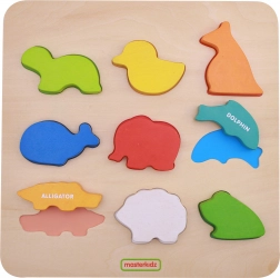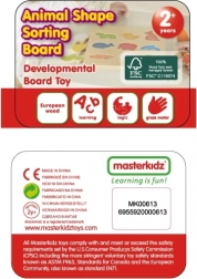 Ontdek het slimme houten speelgoed voor kleuters – een sorteervlak met diertjes van MASTERKIDZ. Gekleurde houten stukjes in de vorm van dieren leren kinderen vormen en kleuren herkennen, en stimuleren tegelijk de fijne motoriek, het logisch denken en de eerste woordjes in het Engels dankzij de labels op de afzonderlijke onderdelen.