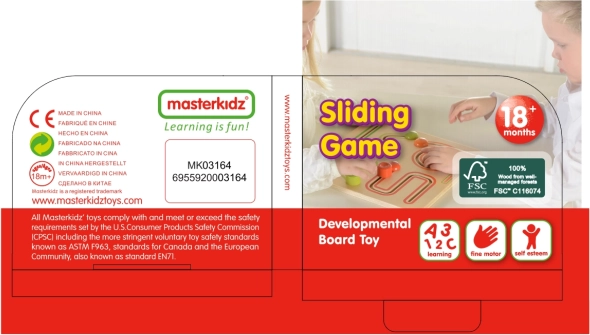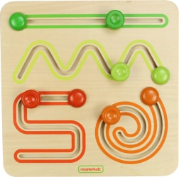 Dit door Montessori geïnspireerde schuifbord van MASTERKIDZ ondersteunt natuurlijk leren door spel. Kinderen schuiven gekleurde schuivers over vier soorten banen en trainen zo de juiste pols- en vingerbewegingen die belangrijk zijn voor toekomstig schrijven. Het stabiele, glad geschuurde hout is prettig om aan te raken en nodigt uit om te ontdekken.