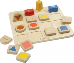 Deze hoogwaardige houten didactische set van MASTERKIDZ ontwikkelt herkenning van vormen (cirkel, vierkant, driehoek e.a.) en kleuren (rood, geel, blauw). Kinderen plaatsen de stukjes op de juiste posities volgens kleur of vorm en maken tegelijkertijd kennis met Engelse benamingen die op de blokken zijn gedrukt.