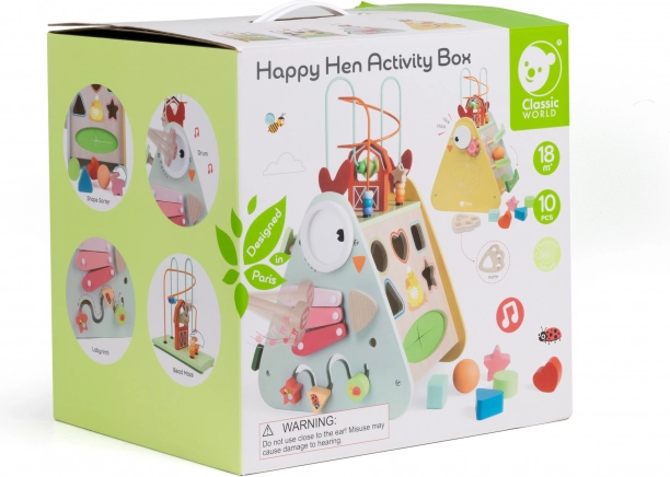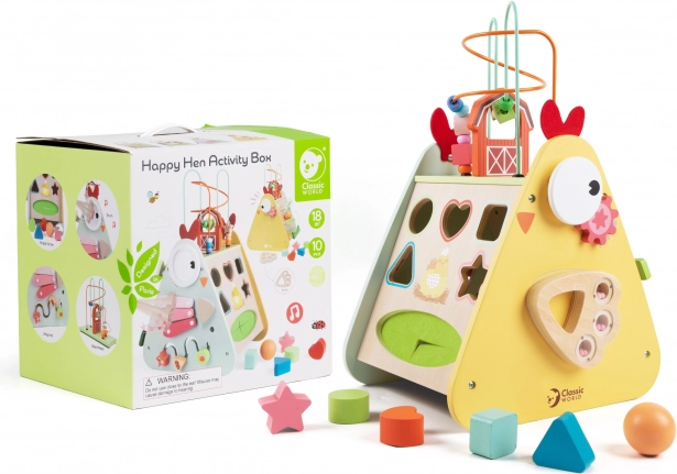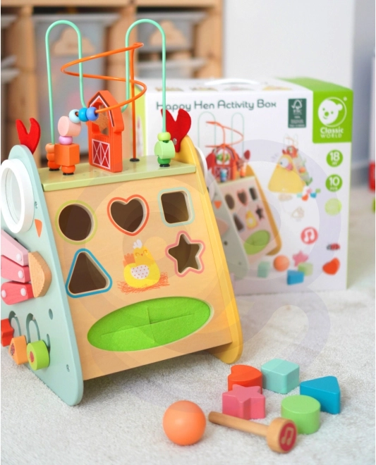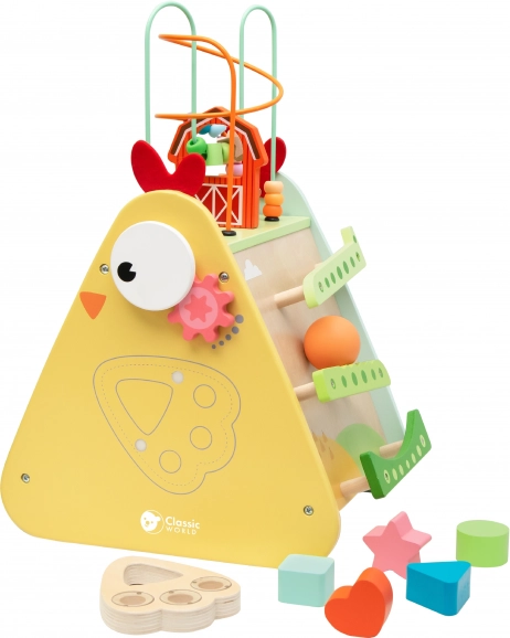 Ontdek de veelzijdige houten Montessori kubus 10-in-1 van CLASSIC WORLD, die favoriete kinderactiviteiten samenbrengt in één slim speel- en leercentrum. Biedt een xylofoon, doolhof, kralenlabyrint, tandwielen, vormensorteerder en meer elementen voor de ontwikkeling van de fijne motoriek, oog-handcoördinatie en creativiteit. Gemaakt van hoogwaardig hout, met niet-giftige verven en geschikt vanaf 18 maanden.