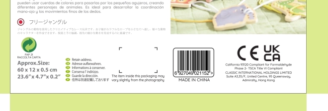 De onderdelen zijn gemaakt van gelakt hout en afgewerkt met niet-giftige kleuren, waardoor ze veilig en prettig aanvoelen. Het spel stimuleert concentratie, creativiteit en natuurlijk leren via beweging en manipulatie.