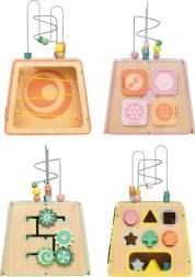 - 6 in 1 (geheime deurtjes, tandwielen, kralenlabyrint, schuifelementen, vormensorteerder, knikkerbaan)