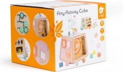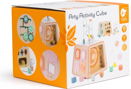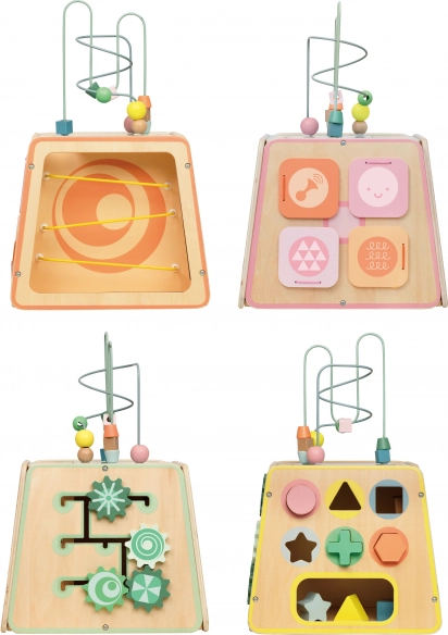 Ontdek veelzijdig leren door te spelen met de houten 6-in-1 activiteitenkubus van CLASSIC WORLD. Deze kleurrijke educatieve box biedt een kralenlabyrint, tandwielen, schuifelementen, geometrische vormen en geheime deurtjes – ideaal voor de ontwikkeling van de fijne motoriek, coördinatie en herkenning van vormen en kleuren.