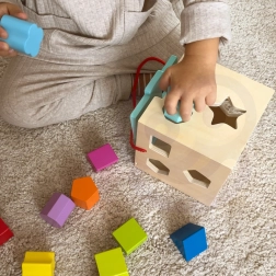 Dit blok helpt kinderen de fijne motoriek te ontwikkelen door vormen te sorteren en blokken op de juiste plaatsen te zetten.