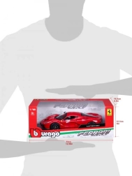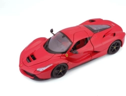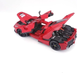Modelauto op schaal 1:18 gemaakt van metalen en kunststof onderdelen. Openende deuren, te openen voor- en achterklep, stuur- en geveerde wielen. Verpakt in een gesloten kartonnen doos, de auto is geplaatst in een polystyreen inlay.