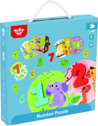Houten puzzels van Tooky Toy zijn een ideaal hulpmiddel voor het leren van cijfers en het ontwikkelen van motoriek bij kinderen. Ze bevatten 20 stukken - 10 cijfers en 10 kaarten met openingen voor het plaatsen van cijfers. Alles is zorgvuldig beschilderd met niet-giftige verf, die veilig is voor kinderen en het milieu.