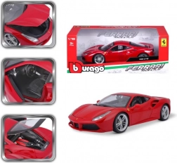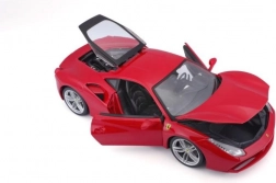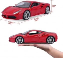 Het Bburago-model vangt trouw de dynamische lijnen en details van de Ferrari 488 GTB in een elegante rode kleur. Dankzij de metalen carrosserie, de precieze lak en de realistische wielen oogt het als een echte auto in miniatuur. Openende deuren, motorkap en motorafdekking geven zicht op het verfijnde interieur en de binnenzijde van de auto.
