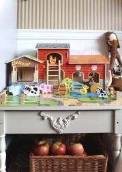 Gebouwen, een vijver en zes schattige dieren geven kinderen alles wat ze nodig hebben om hun eigen boerderij te bouwen en eindeloze verhalen te beleven.
