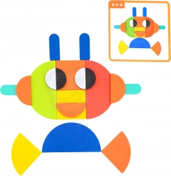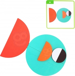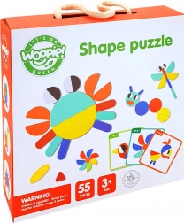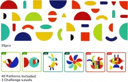 Deze slimme puzzel combineert kleurrijke houten vormen met dubbelzijdige voorbeeldkaarten, waarmee kinderen het herkennen van vormen en kleuren, ruimtelijk inzicht en precisie in beweging trainen. Ze kunnen leggen volgens de kaarten of eigen afbeeldingen maken – de fantasie kent geen grenzen.