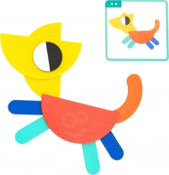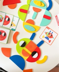 Kinderen leggen kleurrijke vormen na aan de hand van dubbelzijdige kaarten of maken hun eigen afbeeldingen. Ze trainen het herkennen van vormen en kleuren, concentratie en precisie van bewegingen – speels leren dat motiveert.