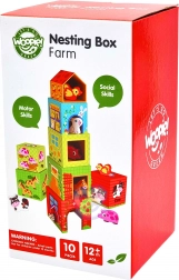 Ontdek de leuke en leerzame stapelkubussen met boerderijthema van WOOPIE GREEN. Gekleurde geïllustreerde doosjes met raampjes en houten dierenfiguurtjes ondersteunen de fijne motoriek, het leren van cijfers en het herkennen van dieren, inclusief Engelse benamingen. Dankzij de veilige uitvoering van hoogwaardige materialen en de mogelijkheid tot stapelen, insteken en opbergen van kleine spulletjes is deze set ideaal speelgoed vanaf 12 maanden.