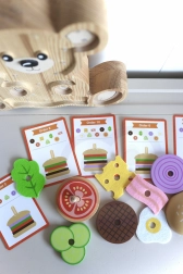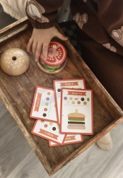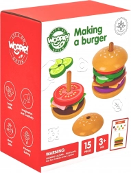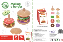 De WOOPIE GREEN houten burgerpuzzel brengt kinderen vanaf 3 jaar een smakelijke portie leren én plezier. Aan de hand van instructiekaarten kiezen kleine koks de juiste ingrediënten, vergelijken hun kleur en dikte en stapelen ze in de juiste volgorde. Net zo makkelijk kunnen ze eigen “recepten” maken die creativiteit en verbeelding stimuleren.
