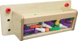 Praktische houten voorraadbak met een transparante voorwand voor MASTERKIDZ STEM-borden houdt alle pinnen, schroeven en koordjes netjes binnen handbereik. Eenvoudige montage op het bord met Masterkidz-schroeven, veilige afgeronde randen en milieuvriendelijk houten materiaal zorgen voor orde, overzicht en comfortabel gebruik tijdens het creëren.