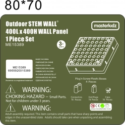 Ontdek creatief STEM-leren met het outdoor bord van MASTERKIDZ. Vier geperforeerde panelen van 40 × 40 cm (4× 20 × 20 cm) maken het mogelijk voor kinderen om pinnen te plaatsen en patronen te maken, tandwielen, leidingsystemen en knikkerbanen te koppelen. Het bord is gemaakt van weerbestendige materialen – verbleekt niet, barst niet en is ideaal voor kinderdagverblijven, schoolpleinen en thuis in de tuin. Inclusief montagepaneel voor eenvoudige installatie zonder boren, direct tegen de muur.
