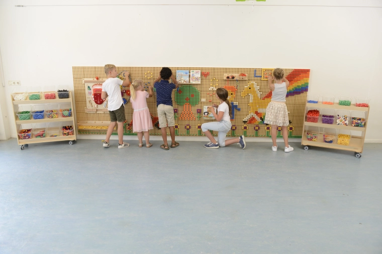 Fijne motoriek en verbeeldingskracht in de praktijk – kinderen maken kleurrijke mozaïeken, letters en cijfers en leren geduld en precisie.