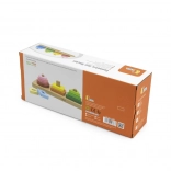 Kleurige geometrische stukken helpen kinderen op natuurlijke wijze vormen en tinten te onderscheiden, ondersteunen het visuele waarnemen en de eerste logische verbanden.