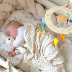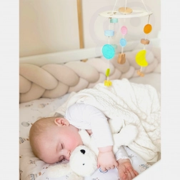 - Muziekmobiel "Kleurrijke Konijntjes" - Helpt het kind te kalmeren en ondersteunt visuele waarneming.