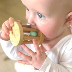 - Rammelaar Roller - Houten met kleurrijke kralen binnenin ter bevordering van motorische vaardigheden.