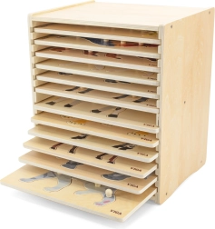 - Een houten standaard is inbegrepen voor eenvoudige opslag en organisatie van de platen.