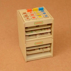 Houten kastje Masterkidz biedt een praktische en milieuvriendelijke opbergoplossing voor uw educatieve borden. Dankzij zijn capaciteit tot drie borden van 28 x 28 cm is het ideaal voor het organiseren van kleine collecties. Op de top van het kastje kan een extra bord worden geplaatst, en indien meer capaciteit nodig is, kan eenvoudig een tweede kastje bovenop worden toegevoegd.
