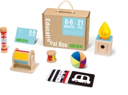 TOOKY TOY presenteert een houten educatieve 6in1 box, die is ontworpen om de algehele ontwikkeling van je kind te ondersteunen. Deze box omvat verschillende spellen die interesse en leren bij kinderen van 0 tot 6 maanden stimuleren.